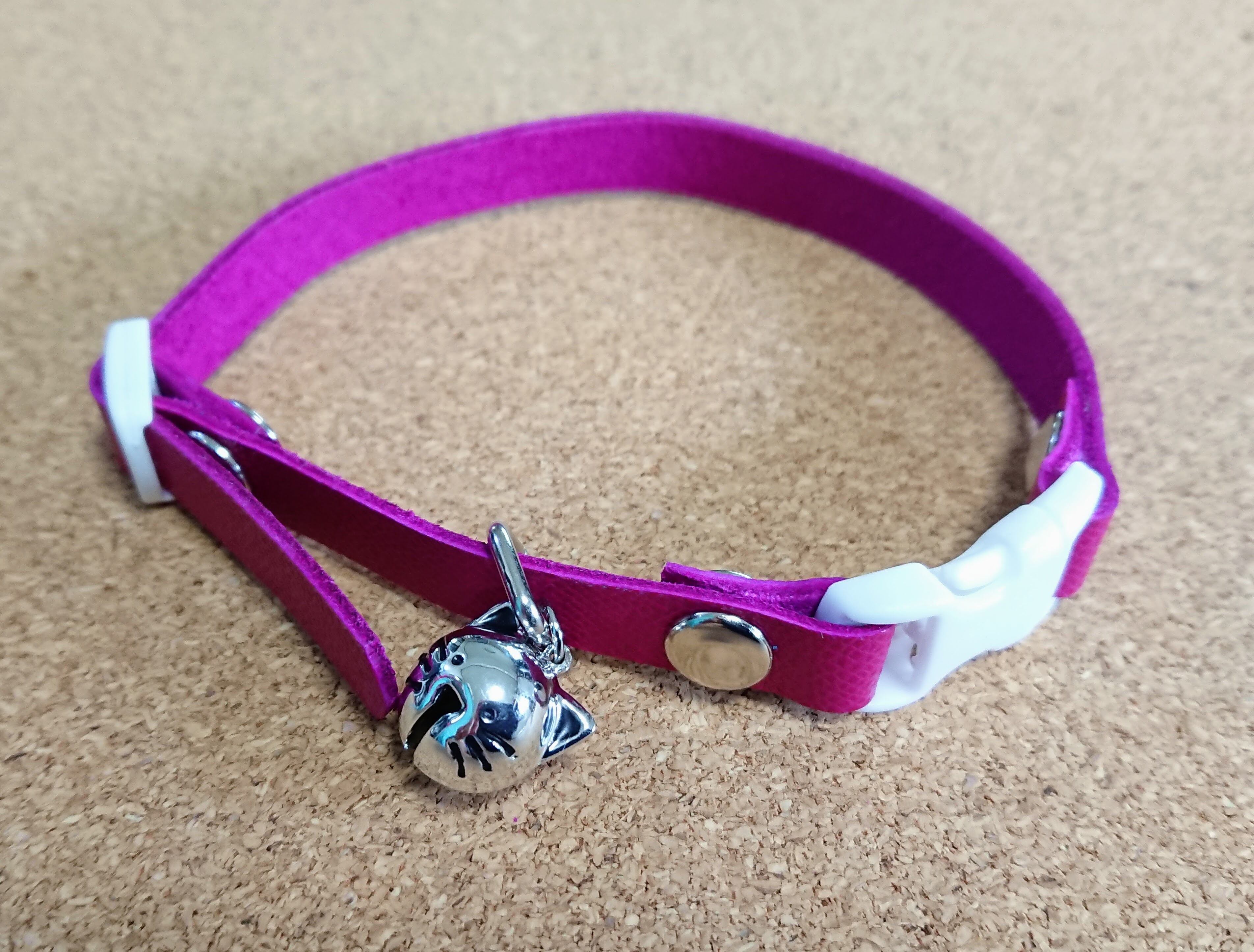 首輪にはネコの顔をモチーフにした鈴が付いています。
